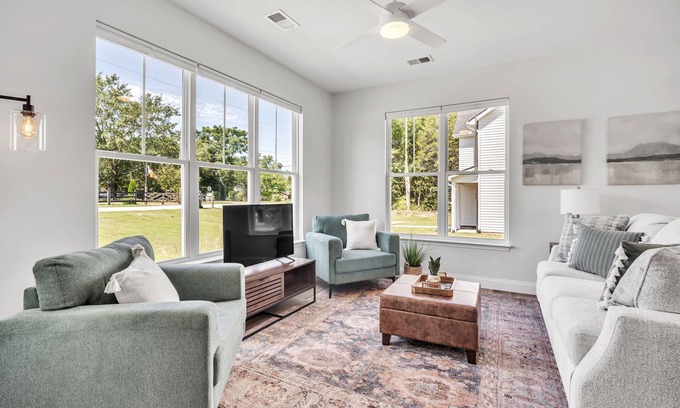 Step into Taylor's Grove West in Greenville's Eastside. A modern oasis, this 3-bedroom home sparkles with vibrant emerald green and cool blue tones. Showcasing a unique and light-filled aesthetic, its location is prime, with key Greenville attractions just a 20-minute drive away including Downtown Greenville, Greer, and TR. Experience refined Upstate living in style.