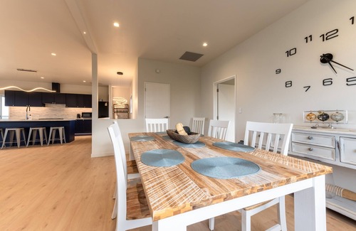 Discover unmatched views and location, an exclusive escape. This new home of 4 bedrooms, 3 bathrooms (2 ensuites), and an open-plan living is ideally located in the centre of Kaikoura, with walking tracks on your door step to the kaikoura look out, Down to the infamous South Bay and into town. Take in stunning 360 degree views from the roof terrace and get all day sun. There is plenty of space to mix and mingle along with seperate social areas if you need to get away to watch a movie or have kids entertained in a separate space.
