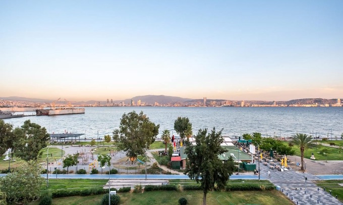 Experience the beauty of Izmir from a prime sea-view balcony in Chios, available for short-term stays and vacation rentals in Izmir. Nestled just 2 minutes from the coast, this modern oasis combines comfort with convenience. Whether sipping morning coffee to the rhythmic ebb of waves or unwinding with sunsets over the Aegean, you'll be captivated by its charm. Ideal for travelers seeking an authentic Izmir experience. Book your coastal getaway today!