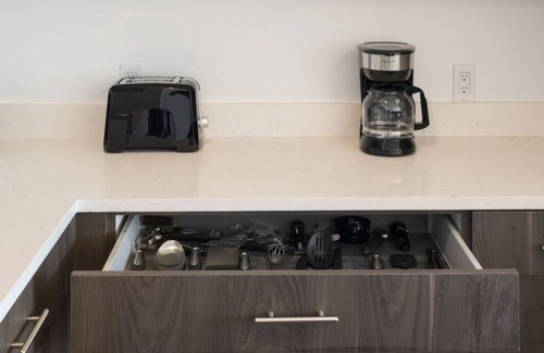 Apartment comes fully furnished with a 55 inch smart tv with access to your favorite streaming services and a 24 inch HD monitor, making it an ideal space for traveling professionals and digital nomads.