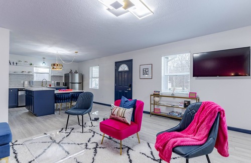 You won’t find another like this! This stunning 3 BR, 2 BA property has been completely renovated with designer finishes + modern updates. Spacious great room with plush velvet touches. Fully equipped kitchen with bright quartz counters + stainless steel appliances. Fall in love with the dedicated vanity space! Bedrooms offer plush beds + crisp linens. Enjoy the private outdoor deck w furniture + grill. In a quiet neighborhood, just 3 blocks from downtown + right on the pedestrian walking path.