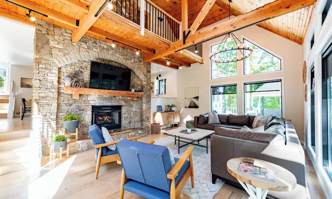 Sleek Mountain Luxury Home w/Dock Slip & Fire Pit is located in Mountainside. Sleek Mountain Luxury Home w/Dock Slip & Fire Pit provides accommodation, featuring Security/Safety, Bedding/Linens, Fireplace/Heating, among other amenities. This House features Security/Safety, Bedding/Linens, Fireplace/Heating, to make your stay a comfortable one.