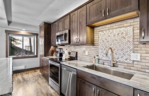 In the living area, unwind on the comfortable seating while watching your shows and movies on the brand-new smart TV. The pristine kitchen, equipped with granite countertops, a wine cooler, and a full suite of stainless steel appliances, makes preparing delicious home-cooked meals a breeze. Sit at the kitchen island bar with seating for four while you wait for your meals, and then sit around the dining table (seating for six) when ready to enjoy your culinary creations.