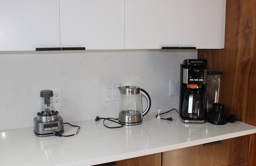 Enjoy cooking or entertaining in the modern chef’s kitchen, fully equipped with stainless steel appliances, quartz countertops, and a large island. The open-concept living and dining area offers a cozy, sophisticated vibe — ideal for relaxing after a day out.