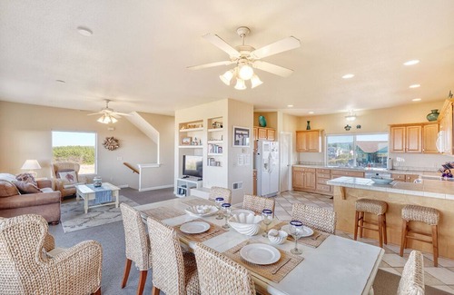 Escape to the breathtaking Washington Coast with Ocean View A and B, managed by Bloomer Estates Vacation Rentals. Nestled at the end of a serene residential street, these oceanfront duplex homes have been beloved short-term rentals for over a decade. A 3-minute stroll through a scenic trail leads you to the pristine beach. When rented together, these homes create a spacious 3400 square foot, 6-bedroom, dog-friendly retreat spanning three stories. Enjoy unobstructed 180-degree views of the Pacific Ocean, the Long Beach Peninsula boardwalk, and the distant North Head lighthouse. With beach access within 50 yards and downtown Long Beach a short 5-minute walk away, your coastal escape awaits.