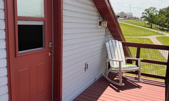 Private entrance. Large deck overlooking the Scioto River Valley. As you enter the suite, you will find a sitting area to catch up on your work or just relax and enjoy your favorite show on the television. Stocked coffee bar and refrigerator.