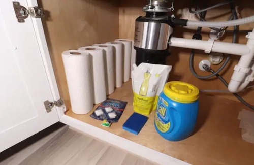 The living room offers a comfortable and stylish sofa in front of the 65 inch SmartTV to binge on your favorite Netflix or Youtube shows. The sofa also converts to a bed for additional sleeping arrangements.