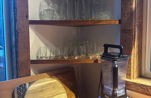 - **Kitchen:** Enjoy cooking in a fully-equipped kitchen featuring industrial appliances, an industrial ice machine, and a large kitchen island. Gather around the stunning live edge dining table for memorable meals with your guests.