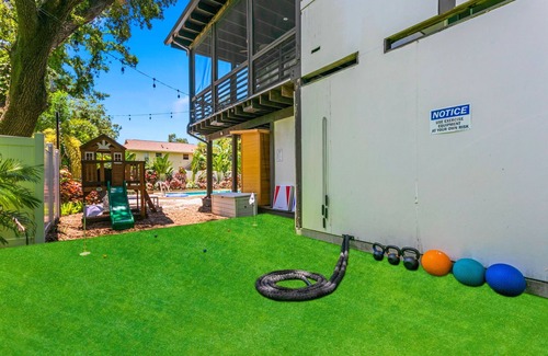 The backyard is a private resort-style retreat, packed with activities for everyone: