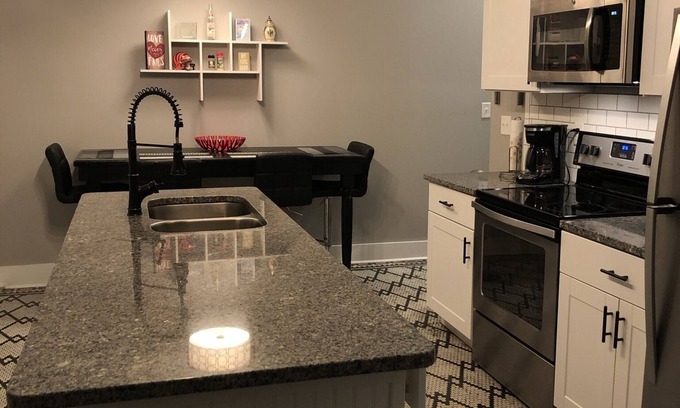Our newly renovated building has four apartments, and you will have access to all four of them! Two are on the first floor and two are on the second floor, and do require stairs. Each apartment has two bedrooms, a full bath, fully furnished kitchen, and plenty of living area. They are not connected, but literally steps away from each other. We are conveniently located near restaurants, shops, bars, Cincinnati, The Ark Encounter, Creation Museum, Newport Aquarium, Reds, Riverbend and so much more!