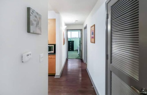 Large inviting open floor plan, hardwood floors, granite countertops, between both apartments: Six(6) comfy queen beds, one king bed and one twin bunk bed and three (3) sleeper sofas, Garden tubs, in-unit washer & dryer, ample dinner & kitchenware, gated and secure parking.