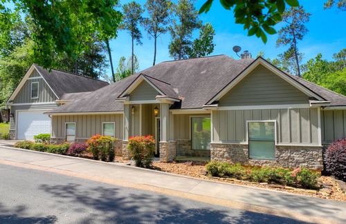 Come enjoy our gorgeous home that offers its guests 6 bedrooms and 4 baths, including 2 master suites! Nestled among other waterfront homes at Rayburn Resort's “The Point," sits our own piece of paradise. Our lake house provides easy and direct water access to all that Sam Rayburn has to offer. Watch from inside or on the back patio as your family and friends enjoy the beach and the water!! Not only does this house sleep 22 guests, it also has a long list of features that very few rentals can offer. We have installed Starlink high speed internet for excellent cell service and speedy streaming services on devices and TVs, which helps if you must work from our home. Complete with a lake view from within the house, guests can enjoy the outdoor patio and be a steps from the water. This home is only minutes away from the boat launch, the Rayburn Country Resort/golf course restaurant and marina, the local grocery and gas station, as well as other restaurants. This HUGE 3000 square foot plus house sits at the edge of a gently sloping path directly to the clear waters of Lake Sam Rayburn! The patio is only 100 steps to the water! At normal or lower lake levels, guests can relax on a wide, sandy beach on the banks of the beautiful, clear lake. Guests can put out chairs and/or a canopy and set up along the water by day, and build a fire for s'mores by night! The main house is beautifully furnished with large wooden light fixtures, plush leather couches, and granite counters with wood floors throughout. The main living area has a large smart TV and bluetooth sound bar. The living/kitchen/dining has an oversized kitchen island, which is usually the gathering place of the guests. The kitchen has a refrigerator, dishwasher, built in under-counter ice machine, ceramic cooktop, oven, and all the cooking essentials. A utility room provides the guests with a washer and dryer. The open living area includes a dining table for 8 that can be used for meals or table games and cards. The living area and all the bedrooms have a ceiling fan and we’ve also provided box fans for guests who like a low hum to sleep with or for extra cool comfort. Luggage racks are provided and can be placed inside the large closets, if desired. The first of two master suites has a king sleigh bed, large dresser, his/her nightstands, large, and private full bathroom. This luxury master bathroom has two vanities, a custom tile shower, soaker tub, and excessive large walk-in closet. There is a private, lockable toilet room for privacy. The second master suite has a queen panel bed, large smart TV, large closet, dresser, and its own private full bathroom. Across the house, there are two bedrooms, each with two queen beds. To accommodate these two bedrooms, there is one full bath with a double vanity between the rooms with access from both. Within the bathroom, there is a separate toilet and shower room with a lockable door for privacy. Next to the kitchen, there is a bunk room with two queen bunk beds. The spacious bedroom/game room above the garage accommodates up to 7 guests. Sleeping arrangements include one single bed, two queen beds, and one queen sleeper sofa, full bathroom, along with a large smart TV opposite two sofas, as well as a hocky table. There is a lovely back porch that faces the water, and is breathtaking at sunset. The back of the house has windows so you have a nice lake view from inside or out. The back patio/outdoor kitchen is furnished with one sofa, 4 chairs, and has an outdoor granite counter with a sink. A separate charcoal is provided. There is also an outdoor shower to wash off sand from the lake. Bring your family and friends for a vacation full of fishing, swimming, tubing, skiing, golf, tennis, pickle ball and/or many more Rayburn Resort activities! Please check out Rayburnresort.com for all the neighborhood amenities!