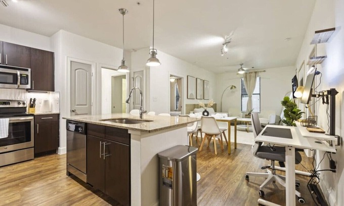 Newly remodeled apartment featuring luxurious furnishings and elegant decor. Enjoy premium amenities such as granite countertops, kitchen islands, and stainless steel appliances for ultimate comfort throughout the day.