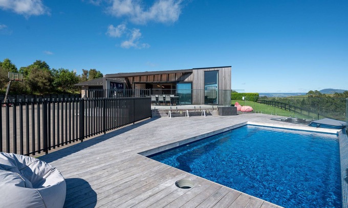 Escape to a peaceful retreat surrounded by rolling farmland, where you'll be greeted by the sights and sounds of the countryside. With cows and sheep grazing nearby and an abundance of birdlife, nature lovers will feel right at home. The property is especially popular with birds, who often gather around the pool area, adding to the tranquil atmosphere. Whether you're relaxing outdoors or enjoying the serenity from inside, this unique rural setting provides the perfect backdrop for a restful getaway. Ideal for families seeking a relaxed space after enjoying the wonders of Rotorua and Te Arawa, and adventure seekers looking to relax, unwind and recover, this home boast expansive views and contemporary amenities.