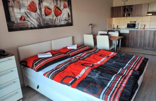Slnečné apartmány offers accommodations in Podhájska, 24 miles from Agrokomplex Nitra and 23 miles from Mojmírovce Manor House. This apartment offers free private parking, private check-in and check-out, and free Wifi. Featuring a private entrance, the apartment allows guests their privacy. Each unit has a terrace, a fully equipped kitchenette with a microwave, a dining area, and a seating area with a flat-screen TV, while the private bathroom includes a shower and slippers. A toaster, a fridge, and kitchenware are also offered, as well as a kettle. Guests at the apartment will be able to enjoy activities in and around Podhájska, like skiing and cycling. Piesťany Airport is 75 miles from the property.