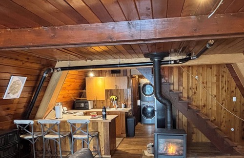 Slope-Side Bliss: A-Frame Haven with Private Hot Tub (Sleeps 7) is located in Silver Star Mountain. Slope-Side Bliss: A-Frame Haven with Private Hot Tub (Sleeps 7) provides accommodation, featuring Internet, Kitchen, Bedding/Linens, among other amenities. This Cabin features Internet, Kitchen, Bedding/Linens, to make your stay a comfortable one.