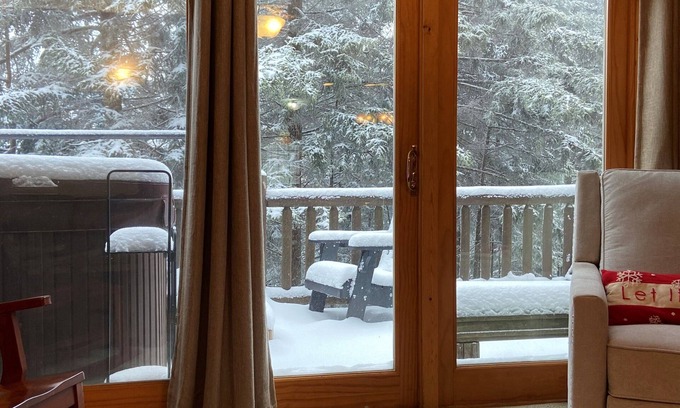 Welcome to Loggers Run # 9 - spacious 3-level, end unit townhouse close to everything! Just a short walk from the action in the village, but yet quietly situated just up the hill and directly slopeside with ski-in/ski-out access to the (Green) Upper Flume trail – perfect for any level of skier. (We are 482ft/147m from the Soaring Eagle Lift and the Upper Flume goes directly behind our unit.)