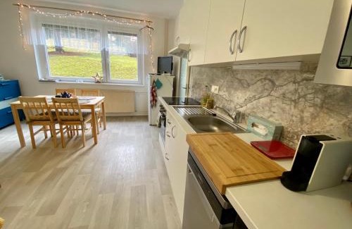 Slunný byt v Jizerských horách 5 postelí is located in Tanvald, just 15 miles from Szklarki Waterfall and 16 miles from Kamienczyka Waterfall. Featuring mountain and garden views, this apartment also provides guests with free Wifi. Dinopark is 17 miles from the apartment and Death Turn is 18 miles away. The apartment consists of 1 bedroom, a living room, a fully equipped kitchen with a dishwasher and a coffee machine, and 1 bathroom with a walk-in shower and bathrobes. Towels and bed linen are provided in the apartment. This apartment is allergy-free and non-smoking. For guests with children, the apartment provides a children's playground. Skiing and cycling can be enjoyed nearby, while a ski equipment rental service and a ski pass sales point are also available on-site. Szklarska Poreba Bus Station is 16 miles from Slunný byt v Jizerských horách 5 postelí, while Izerska Railway is 16 miles away. Pardubice Airport is 74 miles from the property.
