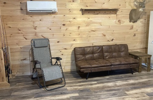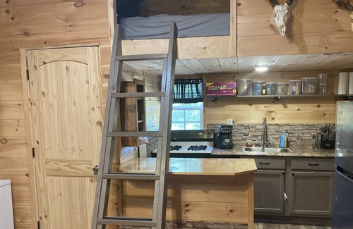 This open concept cabin is small, but has plenty to offer! There is a living area which provides 2 comfy futons, that fold out into a bed (Sleeper bed dimensions: 71" L x 42" W x 16" H). The kitchen provides a stove (the oven doesn’t work), microwave, coffee maker, refrigerator, sink, dishes. The “bedroom” listed is a loft area above the kitchen just for sleeping with a full size mattress (listing says queen bed, because full wasn’t an option, and says bedroom because there wasn’t an option for loft area). Washer and dryer are in the living area. There is 1 bathroom with a standing shower. TV and WiFi access. Outside grill and fire pit. There is also a closed in area with tables that can be used, as well. A wonderful place to enjoy the great outdoors in peace and a short distance from several other enjoyable outdoor locations.