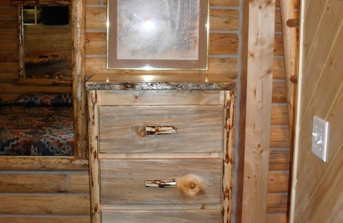 Small Log Cabin with a queen bed, jetted tub/shower, Microwave, fridge, with a Child loft. A small creek runs behind the cabin, with Henry's Lake within 100 yards. Tile floor through the entry and bathroom, and carpet in the bedroom and in the loft. It is 15 minutes to Yellowstone Park, and Golf. We have a marina, boat rentals, other closeby lakes and attractions, ghost towns, visitor centers, fish hatcheries, rivers, springs, etc.