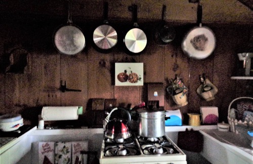 As requested, I purchased a very nice macromay hammock which will have a beautiful view down the lake. Great place for reading a book or just relaxing. Kitchen is supplied with all your cleaning needs for dishes ie. dish washing liquid, hand soap, bar soap, hand wipes, Comet cleaner for sink, Brillo pads for pots & pans and bottle lemon hand sanitizer. Also provided flex garbage bags for the large metal trash can located out in back of the cabin, packets of individual salt, pepper, and coffee, half and half creamers in small individuals containers that are kept in the cooler, napkins, paper towels, and toilet paper