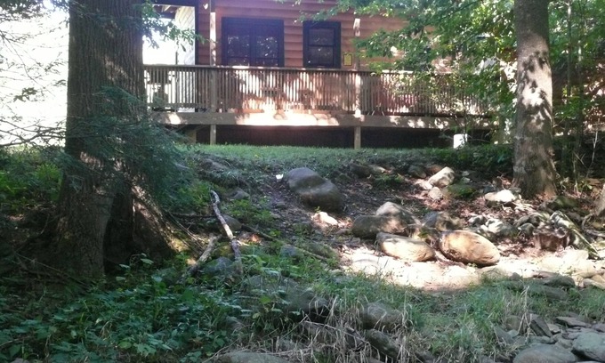 There is a fire pit between the cabin and creek with firewood provided. Additional firewood is available under the back deck of the big cabin 30 yds. away.