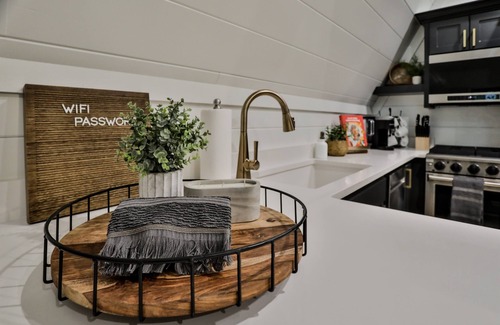 Set on a private road, Hawthorne Branch offers a peaceful atmosphere with a perfect blend of privacy and comfort. The cabin features two king bedrooms—one upstairs in a private loft with a seating area and the master downstairs with a large ensuite bathroom. The master bath includes double vanities, a spacious walk-in shower, with provided toiletries, and a luxurious soaking tub for ultimate relaxation.