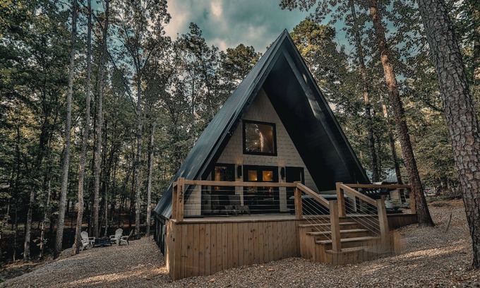 Welcome to **Hawthorne Branch**, a stunning A-frame cabin in Broken Bow, Oklahoma, minutes from Beavers Bend State Park, also known as Hochatown. Built in 2024, this cabin is the perfect romantic getaway for couples or a cozy retreat for a small family.