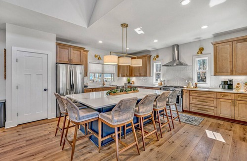 Escape your go to home for years to come! This home is in the perfect location for quiet tranquility yet is only 2 minutes away from Bridgewater via boat or car, where you can enjoy restaurants, entertainment, shopping and boat rentals if desired. This 3 story new construction lake house with 7 bedrooms and 5 bathrooms is a large group vacationers dream and has been designed to comfortably accommodate 18 guests. Have friends or family worried about steps? No worries…our home has main floor living and zero steps to the private large dock from outside!