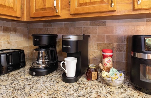 Snuggle up in four cozy bedrooms with 3 king beds and 2 twins with 100% white cotton sheets. Two full bathrooms with tubs, showers and bidets include towels, soap, shampoo, and hairdryers. The large kitchen is well stocked with Keurig and drip coffee makers, microwave, air fryer, dishes, glassware, pots and pans for the chef. Two large porches are perfect for watching the river flow past the back yard, listening to nature or doing absolutely nothing.
