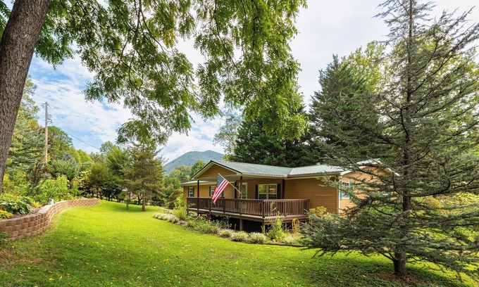 Take it easy at this tranquil, wooded, beautifully landscaped getaway with 180 feet directly on the lazy shallow Tuckaseegee River in the lush mountains of western North Carolina. Close to Western Carolina University, greenway, downtown Sylva, Webster, Cullowhee and Dillsboro in Jackson County.