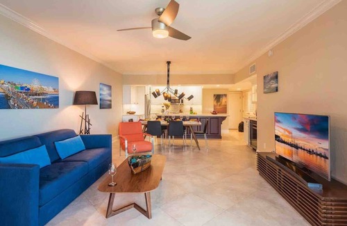The living room of SMOOTH SAILING is modern and bright, with plenty of light streaming in from the floor-to-ceiling glass doors. There's a large flat screen TV, for those times you aren't marveling at the breathtaking Key West sunsets from your private balcony. The living room sofa pulls out into a Queen sleeper to accommodate two extra guests. The kitchen has everything a good chef would need to prepare any meal. There's a dining table for six when you decide to heat leftovers and stay in. Your dining set on the balcony is the ultimate sunset dinner locale.
