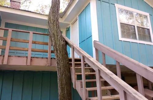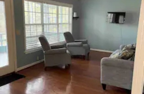 Bring your family and friends and forget your worries in this spacious and serene space on Thomas Mill. The Smurf House offers 2 king bed and 2 queens beds with 2 full bathrooms. Bring your fishing pole so you can fish right off the dock in Thomas Mill.