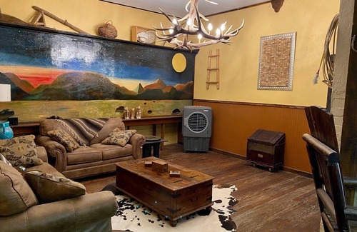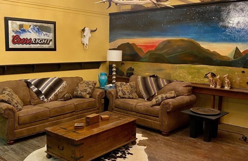 The Snake Bite Saloon is a historic beauty in the heart of downtown Marathon, Texas. This accommodation offers a real old-time saloon bar with rustic features, a pool table, fitness area, and full kitchen. With the 30 foot saloon bar, guests can entertain, relax, and enjoy this unique space while creating lasting memories in this unforgettable west Texas town.