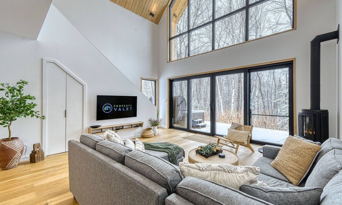 Located in Mont-Tremblant, this welcoming chalet brings it all within your reach. There's convenient onsite parking, so you can leave your vehicle behind and let your feet make short work of the 2-minute walk to Le P'tit Train du Nord or the 11-minute walk to Scandinave Spa Mont-Tremblant.