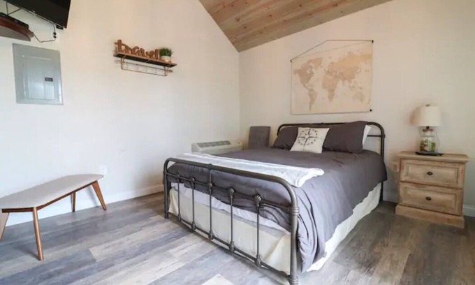 Galloping Goose Cottages located Dry Ridge, Kentucky. We offer 10 cottages 8 with Queen Beds and 2 with Twin beds. All are fully equipped with Air Conditioning and Heat, Cozy beds with Luxurious Linens, Full Bathroom, ROKU Flat Screen Tv's, Wi-Fi, Mini Refrigerator, Microwave, and Keurig. The cottages are 190 Square feet. Parking on premises is available. They're located only minutes away from The Ark in Williamstown, KY! The Cottages are located next to a train track.