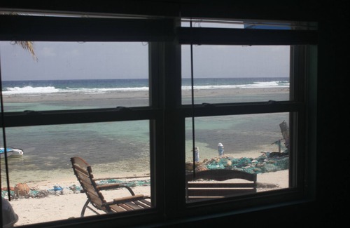 Walking distance to restaurants, Dive Shop, stores. On the golden strand within the protected lagoon area of the Island. Offering great snorkeling direct from the beach in front of the unit, we have seen sharks, stingrays, eagle rays, parrot fish, tarpon, octopus, eels, and many other tropical fish there. It is one of only 2 end units which offers seclusion and privacy. On-island manager will greet you at the airport and take you to our unit, includes a stop for groceries if you like. 2 Bedrooms-both with queen beds. Foldout couch in living room(can sleep 6 total) 1 bathroom-TV & WiFi for streaming included. Master bedroom & Living room have beautiful view of the beach and reef. Inside the south side reef with amazing views and perfect for snorkeling. . Outdoor shower for rinsing off after swimming or snorkeling. Also provided with a 2 person kayak.