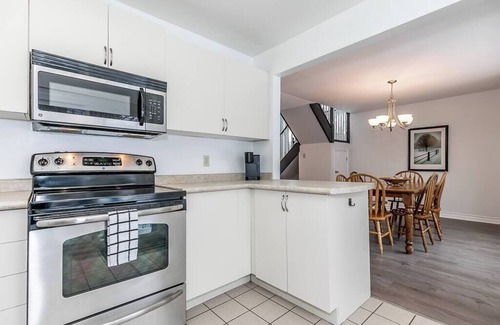 Welcome to our vacation home located in Collingwood, Ontario. This unit sleeps 8 within 3 bedrooms and 2.5 baths. The main floor features an open concept living space perfect for entertaining and hanging out with your entire group. Guests can enjoy the spacious patio with a propane fire pit, and outdoor seating. This property is perfect for couples, families, and friends.