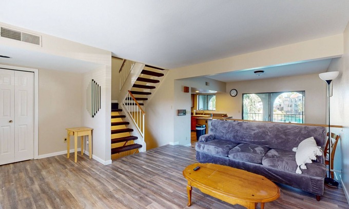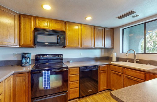 Welcome to resort-style living in one of the Valley’s most desirable private gated communities! Enjoy the view of Dobson Ranch’s beautiful tranquil lake right outside the balcony and gated backyard while grilling up your favorite foods on the private outdoor grill. Step into an open floor plan on the main level that is perfect for entertaining, with a dining room set that sits six and additional seating at the breakfast bar. The full kitchen makes family meals and snack prep a breeze. A private washer/dryer will ensure everyone can pack light, and central air conditioning means that everyone can chill out comfortably. After enjoying each other's company, head out to the shared community pool for a refreshing swim. When it is time to call it a night, choose between any of the four bedrooms. Two bedrooms are equipped with wall-mounted TVs for in-bed viewing. When they're not splashing in the shared pool, kids can keep entertained with a variety of board games available in the home.