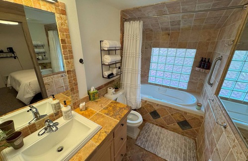Welcome to Snowcreek Suites BnB! Ponderosa is a private, cozy second-floor micro-suite that greets the morning sun. Relax in the spacious bathtub, enjoy complimentary coffee and tea, and unwind with a flat-screen smart TV. The plush Queen platform bed is dressed in 100% organic cotton linens for a restful sleep. We also have a shared hot tub. Located in the heart of Leavenworth, you're within walking distance of wine tasting, river floating, dining, and more!