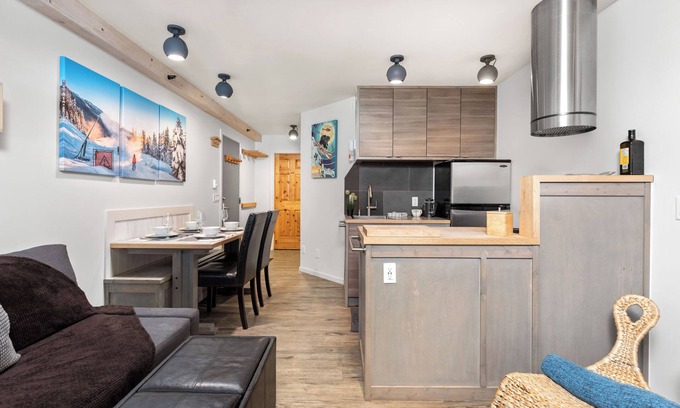 Prepare for an experience that'll have you shouting, "I'm on top of the world!" This snug and stylish condo is nestled within the trees of Gondola Village, and it's practically winking at the Creekside Gondola. Convenience is key– you're a mere 3-minute walk from the ski lift, grocery stores, bars, and restaurants. Leave your car parked for free and embrace the mountain vibes hassle-free.