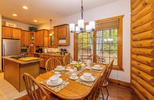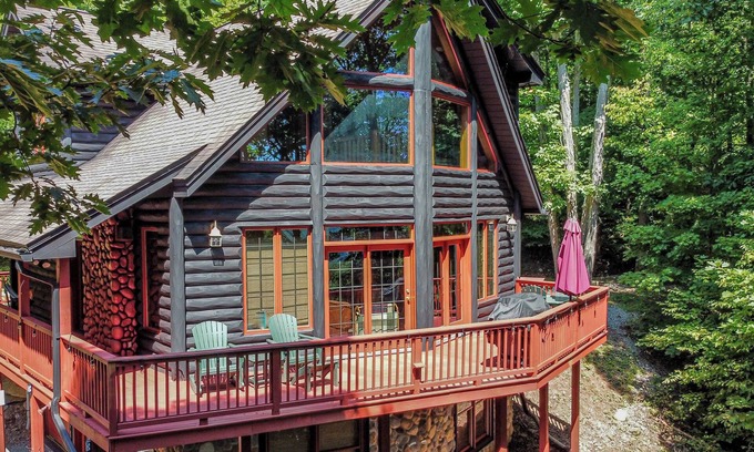 This luxurious mountain home is the perfect space for friends, families, or work retreats. Designed to delight guests no matter the season, our rustic home includes a large outdoor deck with a grill and jacuzzi. And even a private gym.
