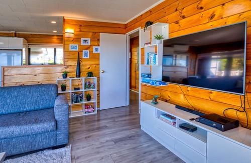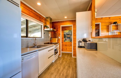 Wake up to beautiful sunrises on the horizon, go for gentle walks on the beach or try your hand at something more adventurous. Magical Mangawhai has plenty to offer. This Lockwood home has recently been renovated with brand new beds, kitchen and bathroom fitted. A large deck overlooks the campground and estuary with views out to sea towards Great Barrier. Easy access to the estuary and a 10 minute walk to the shops. A must do is visit Bennett's Chocolate factory and the Saturday morning organic markets is full of treats for your stay including the best free range eggs, a local coffee bean roast and delicious cheeses. The local butcher has won numerous awards for his quality meat for the BBQ and the deli in the Heads has fantastic cheese sticks. There is a choice of restaurants, and at the surf club, during the fine weekends, you can get a delicious frozen fruit yogurt cone or coffee from the locals. If you are up for some exercise, the 3 hr Cliff walk from the surf beach is spectacular. There are other great walks and wineries to keep you busy. The newly built skate park and play area will entertain the children for hours. Special conditions: The bach is alarmed and helpful hints for your stay are on a card on arrival. Available from 4pm check in and 11am check out.