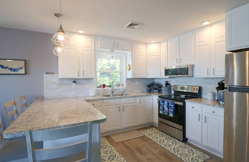 Experience tranquility at Willow Avenue, your perfect lakeside retreat. This newly remodeled second-floor unit features charming lake house decor and a spacious open living area. Large windows and a grand second-floor porch offer expansive views of Chautauqua Lake, creating the perfect spot for enjoying your morning coffee or unwinding at the end of a fun-filled day. Accommodating up to six guests, the retreat boasts three bedrooms, each furnished with a queen bed.