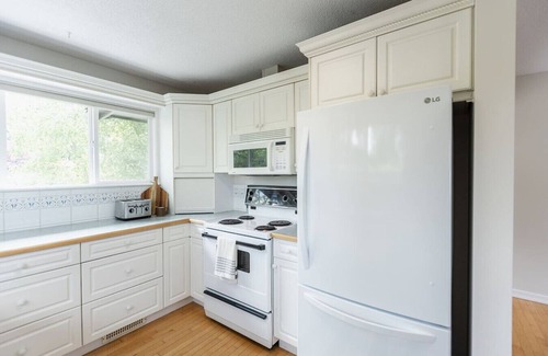Two newly renovated bathrooms include heated floors and upgrades. Both bathrooms are located on the main floor of the house. One bathroom has a bathtub and the other bathroom has a glass enclosed shower. Bathroom essential provided: shampoo, conditioner, body wash.