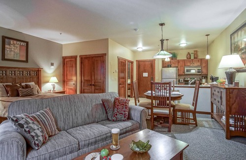 Soaring Eagle #315 - 1 Bedroom Studio, 1 Full Bath- Bedding : 1Q,1SS. Enjoy the sunset from atop Snowshoe Mountain in this comfortable, well-equipped west-facing studio apartment. this studio has a queen-size bed and queen-size sleeper sofa, flat screen TV and gas fireplace, a fully equipped kitchenette and dining table for four, a bathroom with a walk-in shower and a small patio. No washer or dryer in the unit, however, laundry facilities are available on site.