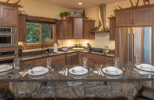 This three story Lodge offers ample space for a large family. Enjoy the stunning kitchen with granite counter tops and state-of-the-art appliances – it is a modern masterpiece for conquering the home cooked meal. The great room makes certain that no chef feels left out; enjoy the companionship of your family and friends gathering in the living room or in the large dining area. The family room downstairs provides a great place for everyone to gather for a quick game of ping pong or just to relax in front of the 74 inch television after a hard day of vacationing! The Lodge offers 6 expansive bedrooms, in addition to the bedrooms there is a spacious bunk room and 5 bathrooms. You will never find yourself wanting for your own space. The bedrooms are outfitted with top of the line Nectar mattresses. The bunkroom offers a kids paradise – complete with 4 Nectar queen beds and a comfy couch and ottoman for relaxing and watching the 74 inch television, this room will have you believing you have went to the movies from home just bring the popcorn!