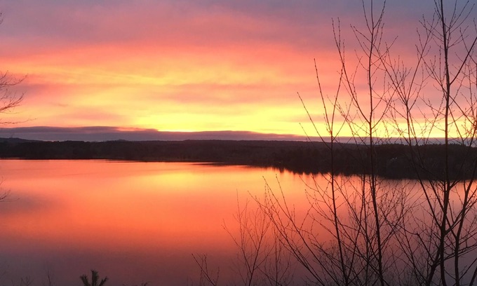 Swim in the lake! Walk the beach. It is a steep walk to the beach with trails and three sets of stairs, but once down- so worth the hike. The water levels do fluctuate on Hinckley Lake. Normally, the primitive beach is sandy with much driftwood to collect or have a bonfire lakeside. Walk shore to collect drift wood. Sit on ski chair for sunsets. Bring your mountain bikes and 4 wheelers to ride the trails. Hike the trails. Fish the lake abundant with fish! Relax on the deck.