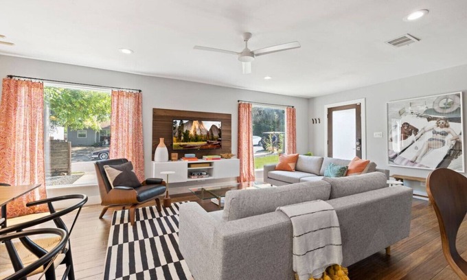 One of the hottest zip codes in Austin just off the most infamous Avenue--S. Congress, this stylish and spacious home is a perfect home base for your group. Walkable neighborhood in eclectic and hip S. Austin. Please be mindful of noise this is a residential area and there are neighbors next to the house. The windows are quite thin and they do messages if things typically get too loud late at night.