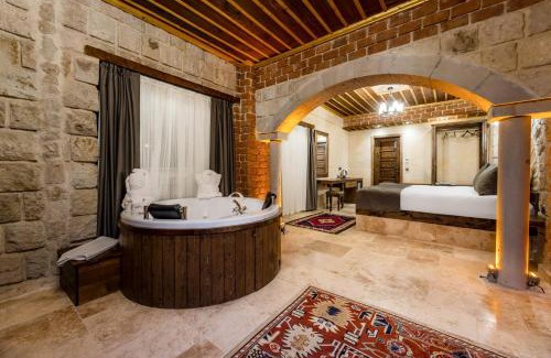 Featuring a seasonal outdoor swimming pool, garden, bar and free WiFi, Soho Cappadocia is located in Göreme, 1.8 miles from Uchisar Castle and 4.6 miles from Zelve Open Air Museum. A hot tub and a bicycle rental service are available for guests. The property provides room service, a 24-hour front desk and currency exchange for guests. The hotel will provide guests with air-conditioned rooms offering a desk, an electric tea pot, a minibar, a safety deposit box, a flat-screen TV, a terrace and a private bathroom with a shower. Soho Cappadocia has certain units with city views, and each room includes a balcony. Guest rooms include a closet. Breakfast is available, and includes buffet, continental and vegetarian options. Nikolos Monastery is 6.2 miles from the accommodation, while Urgup Museum is 6.5 miles from the property. Nevşehir Kapadokya Airport is 24 miles away, and the property offers a paid airport shuttle service.
